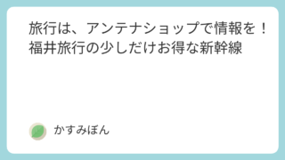 旅行は、アンテナショップで情報を!福井旅行の少しだけお得な新幹線